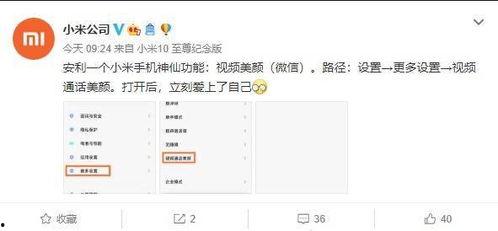 你知道吗?最近我在用小米手机拍视频的时候,发现了一个超级好用的功能——微信视频的美颜功能!这让我在和朋友视频聊天的时候,感觉自己瞬间变成了小仙女,美得不要不要的。今天,就让我来和你详细聊聊这个小米微信视频美颜功能,让你也get到这个美颜秘籍!